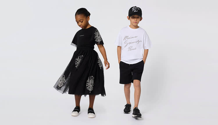 Bringing the classic Parisian elegance of its mainline collections, Givenchy enters the world of kids’ wardrobes in simplicity that embraces childhood. From monochromes made fun with spectrum-coloured logos to the brightest of red, discover the selection of effortless cool, from slides and dresses to t-shirts, sweats and hoodies.
