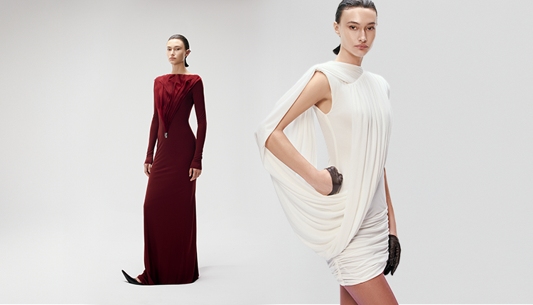 NEW SEASON CHATS by C.DAM Marlene Draped Dress in Lumine Jersey 220 KWD - Fast Delivery